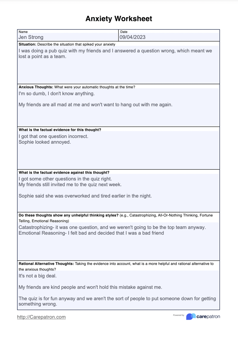 One popular type of anxiety worksheet is the thought record. This worksheet helps you challenge negative thoughts and replace them with more realistic and balanced ones. By identifying and reframing your negative thought patterns, you can reduce anxiety and improve your overall mental well-being.